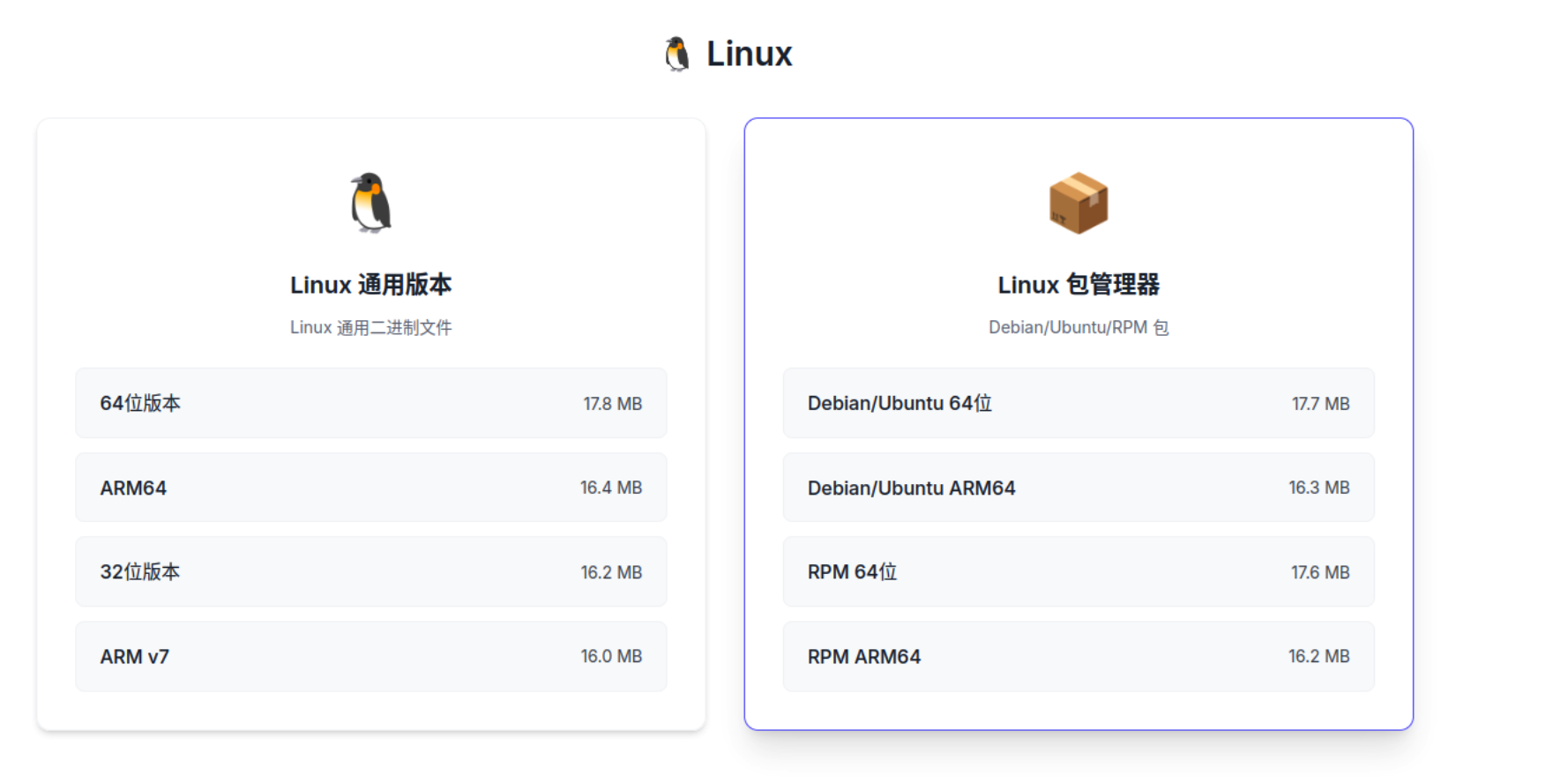 - 如果是 ARM64 架构,请选择 "Linux 通用版本 ARM64";
